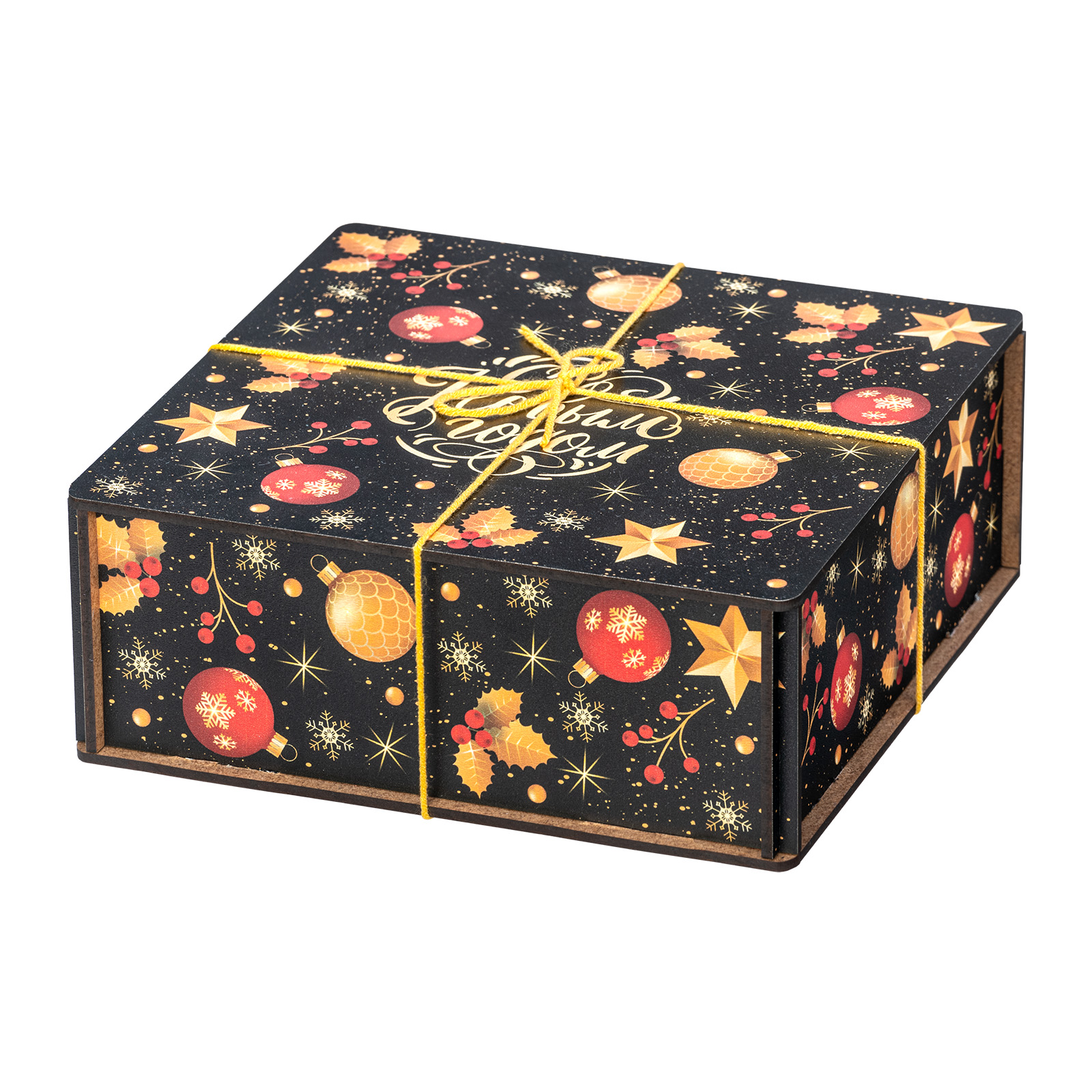 “Рождественская магия” - это новогодний сладкий подарок, отличающийся довольно строгим и оригинальным дизайном. Это небольшой деревянный ящичек темного цвета, украшенный новогодними иллюстрациями и перетянутый ярко-желтой веревкой. Внутри этого ящичка бережно хранятся отборные вкусные сладости и небольшой памятный сувенир в виде лошадки - символа 2026 года. Такой подарок идеально подойдет для поздравления любого взрослого сластены: воспитателя, классного руководителя, коллеги или начальника! Такой набор гарантированно вызовет приятные эмоции у того, кто его получит.