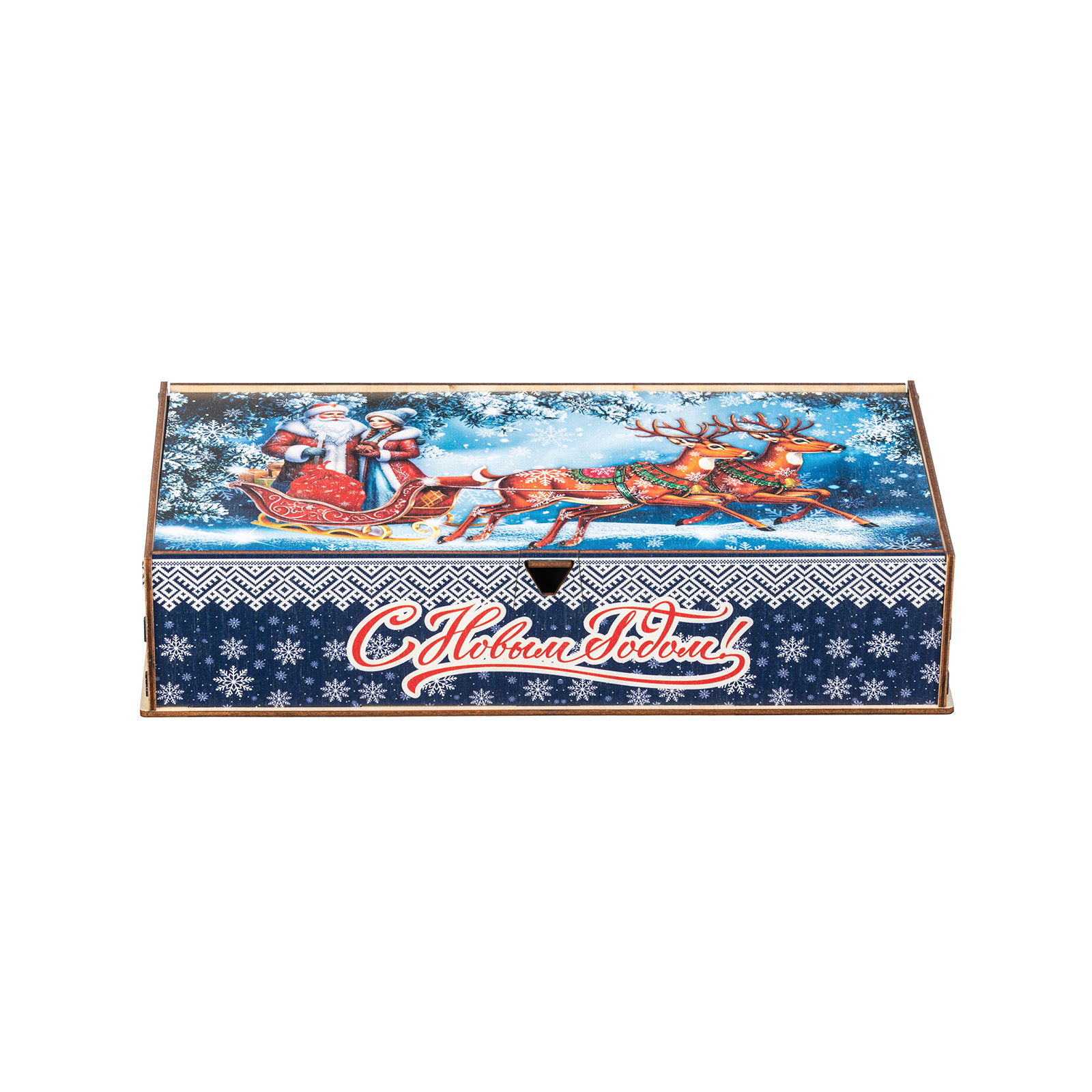 Интересный вариант новогоднего подарка – «Сказочное Путешествие». Он представлен в разделе Дерево. Отлично подойдет на подарок в 2026 году с символом Лошадь. Внутри такого презента находится кондитерский набор весом 1000 граммов.