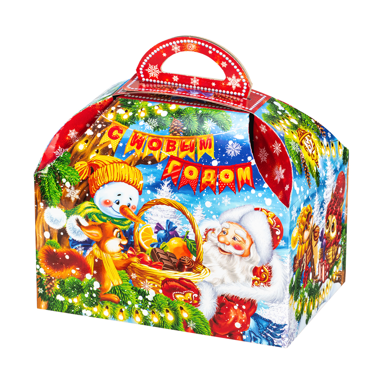 Подарите своим родным и близким безграничную радость вместе с новогодним сладким подарком “Сундук лакомств”. Этот подарочный набор представляет собой небольшую картонную коробочку в форме сундука с удобной ручкой сверху. На упаковке нанесен очень яркий привлекательный рисунок, на котором Дед Мороз и его друзья обмениваются подарками и веселыми улыбками. В состав подарка входит 900 грамм вкусных и разнообразных лакомств от ведущих кондитерских предприятий, а также небольшой памятный сувенир в виде символа наступающего года.