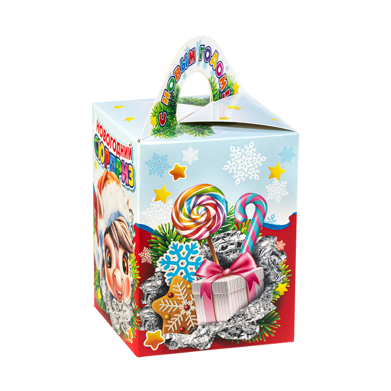 Интересный вариант новогоднего подарка – «Вкусный привет (Полезный состав)». Он представлен в разделе Картон. Отлично подойдет на подарок в 2026 году с символом Лошадь. Внутри такого презента находится кондитерский набор весом 300 граммов.
